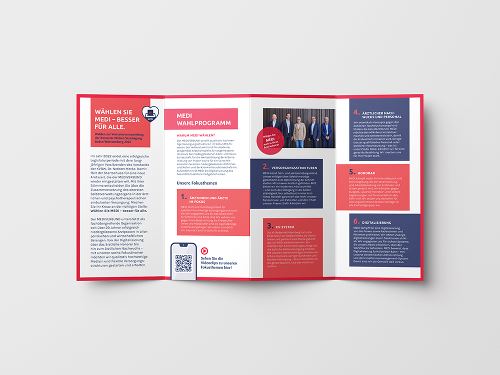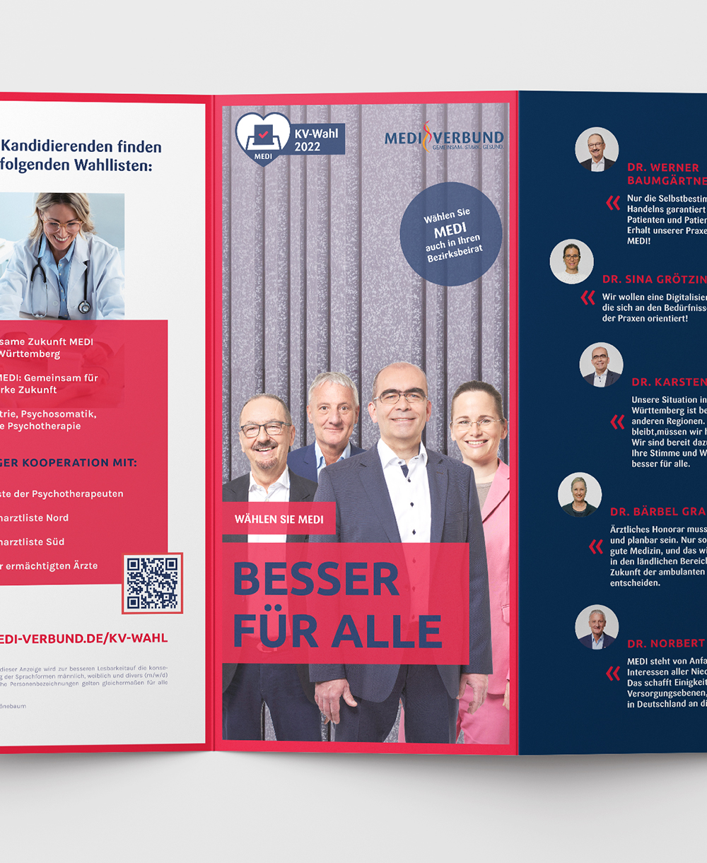 So entstanden verschiedene Designs, beispielsweise für den MEDI Campus und die MEDI-Wahlkampagne der KV- und Kammer-Wahlen.
