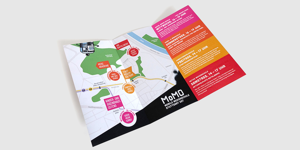 Und wir – Juhu! – haben ALLES gestaltet! Logo, Illu, Stadtplan, Farb­konzept, Flyer, Plakate, Website! Und das auch noch in Zusam­men­arbeit mit tollen Leuten. Da freut sich nicht nur die coole Spraydose!