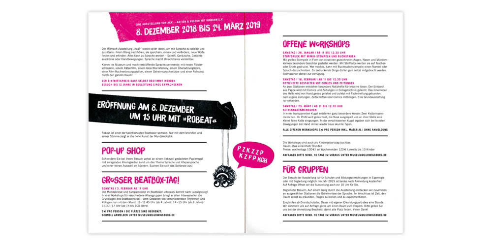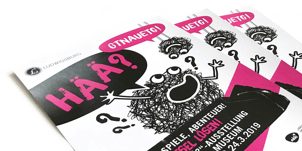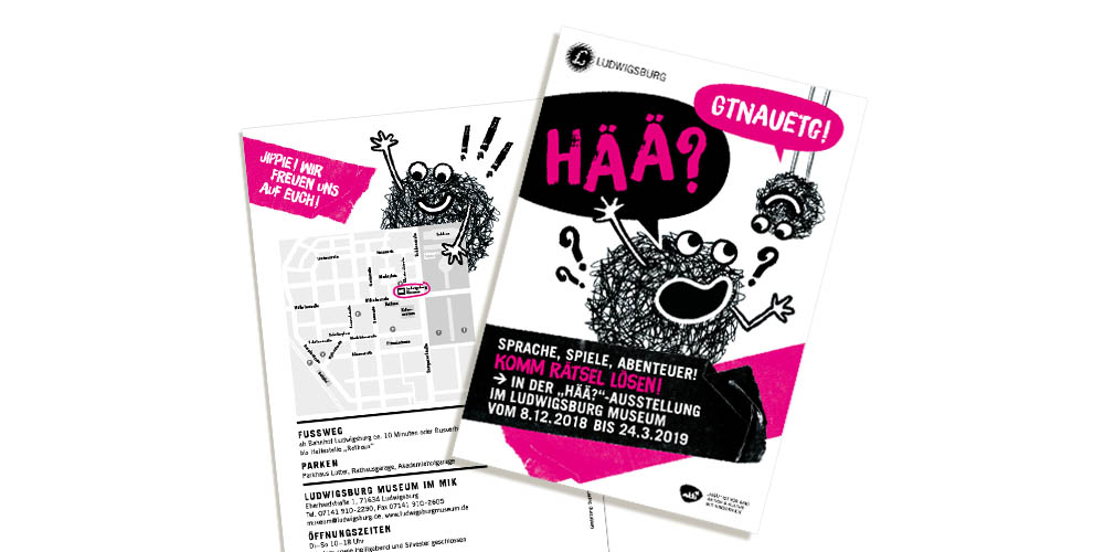 Hää? Was bedeutet das denn? Ganz einfach: Dahinter verbirgt sich eine Kinderausstellung über Rätsel, Sprache, Spiele und Abenteuer. Zum zweiten Mal hatten wir die Ehre für das MIK die Kommunikationsmittel zu entwerfen.